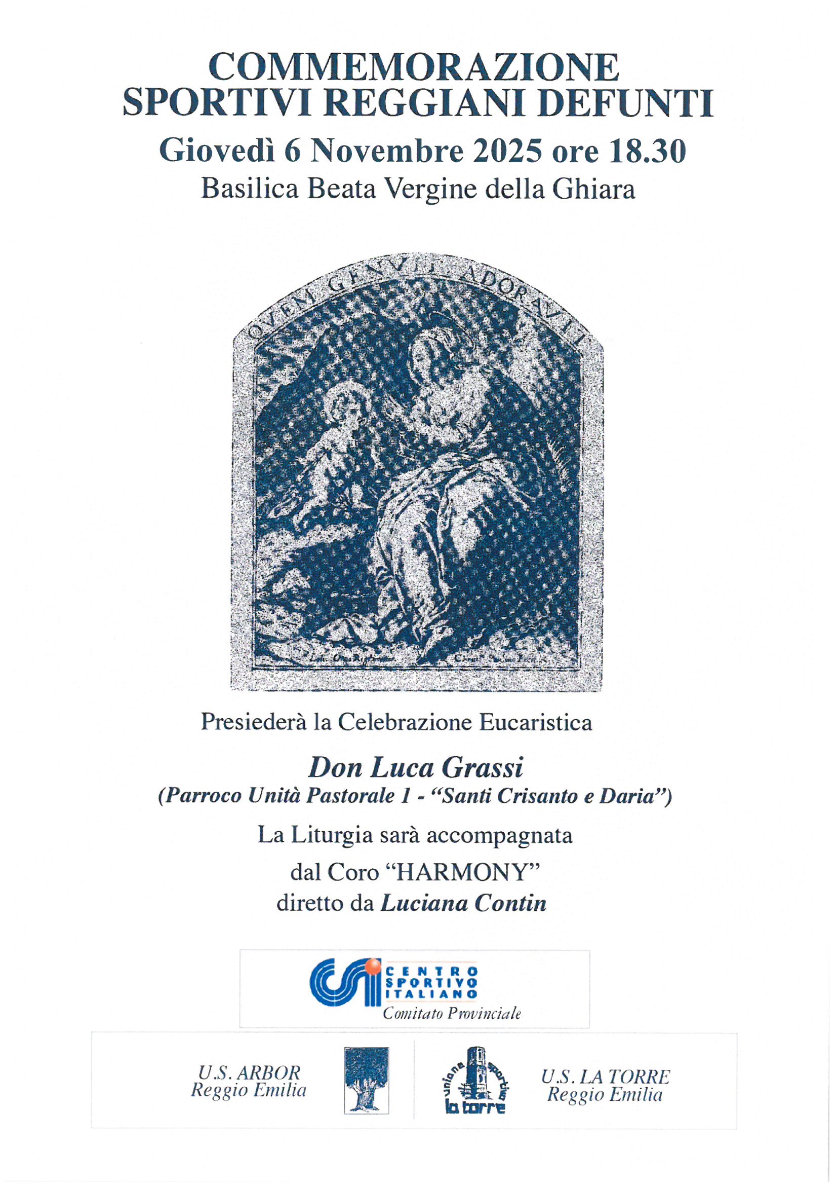 Alle 19, nella chiesa di Santa Croce (via Adua, Reggio Emilia), il consulente regionale del Centro Sportivo Italiano, don Pietro Adani, celebrerà la Santa Messa. Alle 20,15 la cena e la festa aperta a tutti nei locali del ristorante pizzeria Il Faro (via Degani 1, in zona aeroporto): confermata la presenza delle giocatrici della prima squadra, l’Interclays Itarca capolista nel campionato femminile di serie C regionale, e delle atlete di tutte le squadre giovanili.